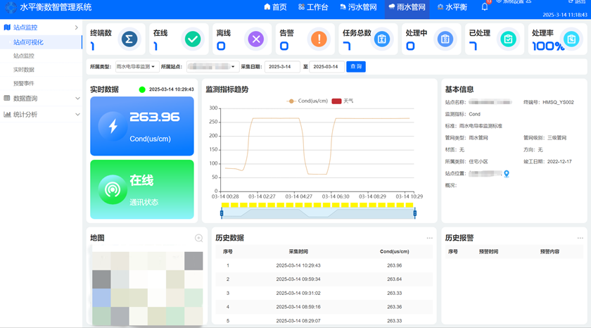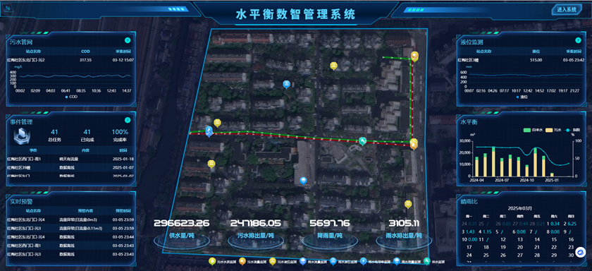 “水平衡數(shù)智管理系統(tǒng)”綜合運(yùn)用物聯(lián)網(wǎng)、大數(shù)據(jù)分析、在線監(jiān)測(cè)等技術(shù),全方位監(jiān)測(cè)降水量、積水量數(shù)據(jù),針對(duì)性解決治理痛點(diǎn),極大提升管理效率。